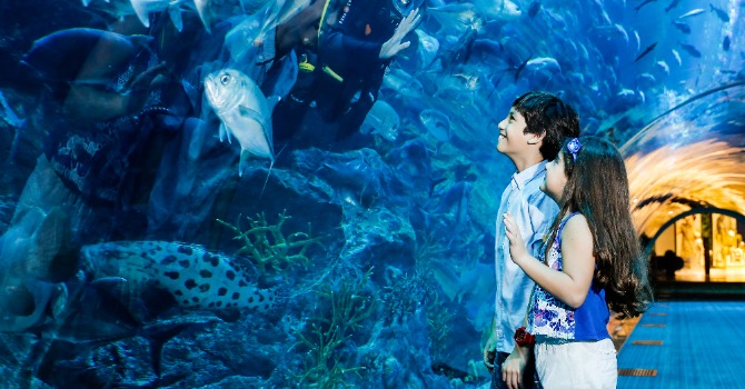 • An unforgettable journey awaits you with many exciting thematic sections such as the main tank and tunnel aquarium, rocky shores, jellyfish gallery, underwater forests, rivers and waterfalls, penguin island, crocodile kingdom.